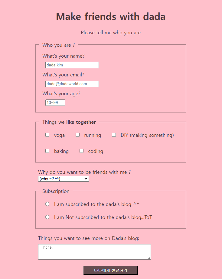 <input id="submit" type="submit" value="다다에게 전달하기">